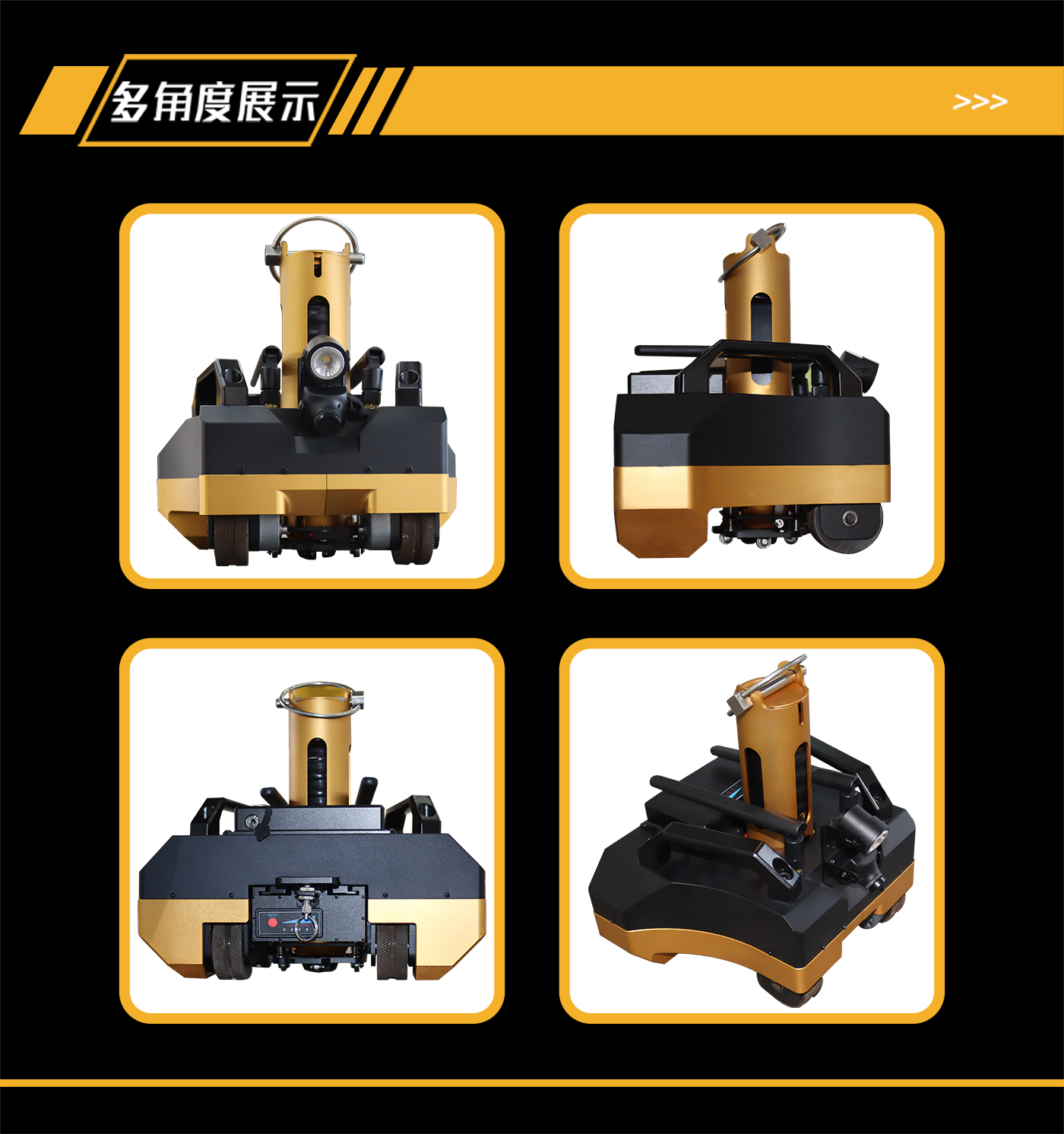 1、磁力爬壁設計,可垂直、水平、倒置吸附于鐵磁性表面,適應管道、儲罐、船舶等曲面及高空場景。