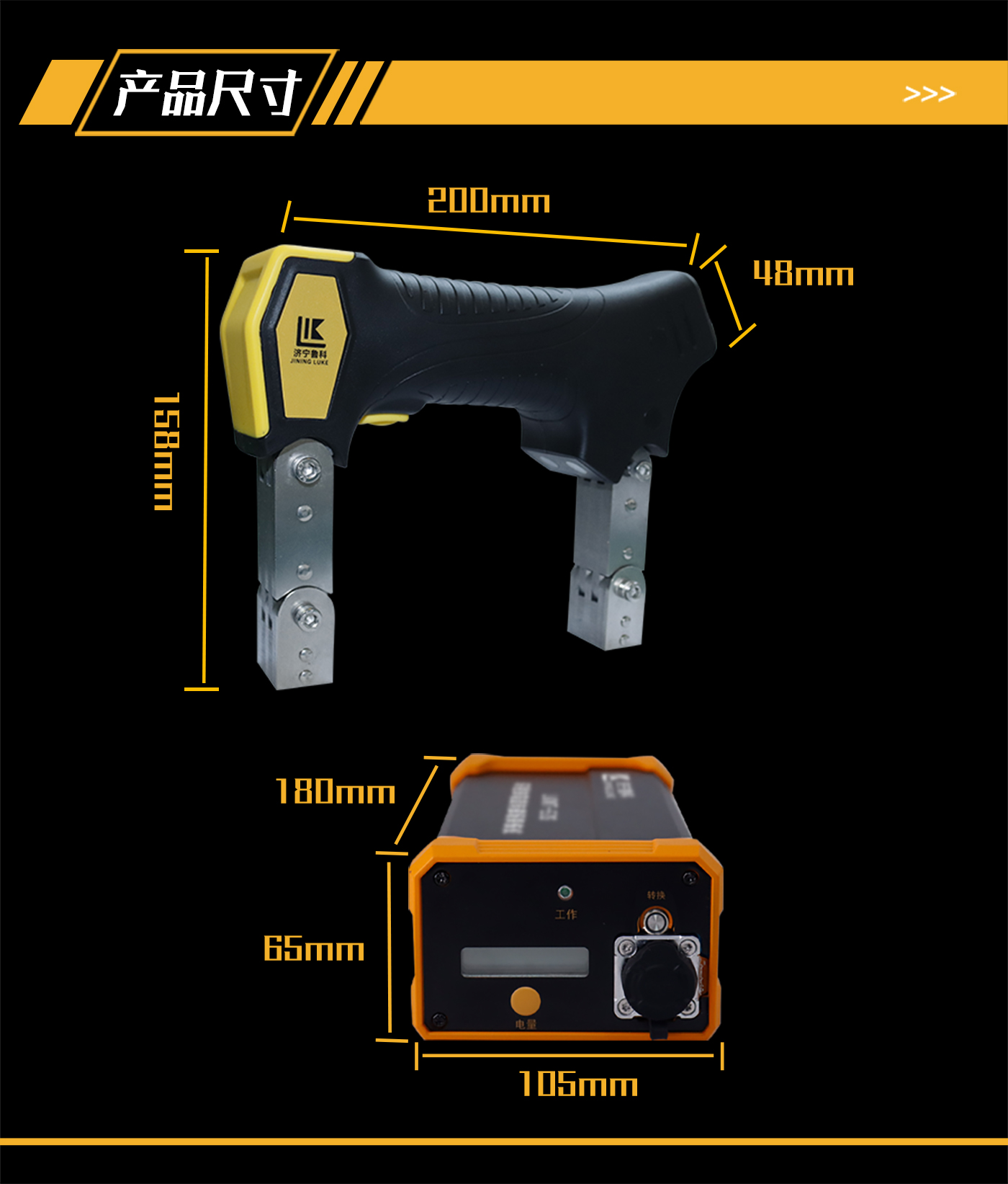 ?探頭85V-265V適配器帶有OLED顯示屏及操作按鍵,可顯示及設(shè)置直流或交流探傷模式、點按磁化或連續(xù)磁化工作模式、紫外線或白光照明模式。