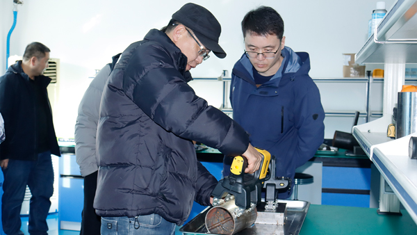 ACFM培訓班一行同時參觀了我公司無塵車間、實驗室等,對我公司自主研發的無線式磁粉探傷儀、管道磁粉探傷儀、角焊縫磁粉探傷儀、腐蝕測厚機器人及聯合中國石油大學(華東)共同研發的ACFM交流電磁場檢測儀等設備進行性能測試,均達到預期效果,并對我公司研發、生產及售后能力給予高度肯定。