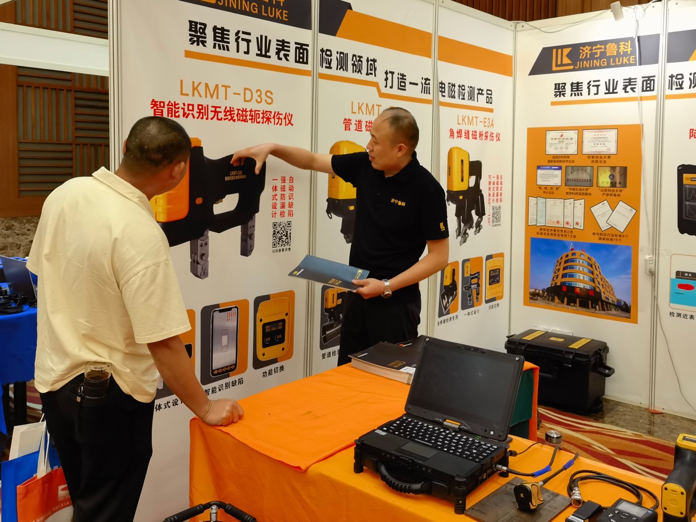 濟寧魯科檢測器材有限公司攜聯合中國石油大學(華東)合作研發的ACFM交流電磁場檢測儀及自主研發的一體式磁粉探傷儀、管道磁粉探傷儀、角焊縫磁粉探傷儀、腐蝕測厚機器人等設備參加設備展示,儀器一經亮相便引起與會代表廣泛關注與一致好評。