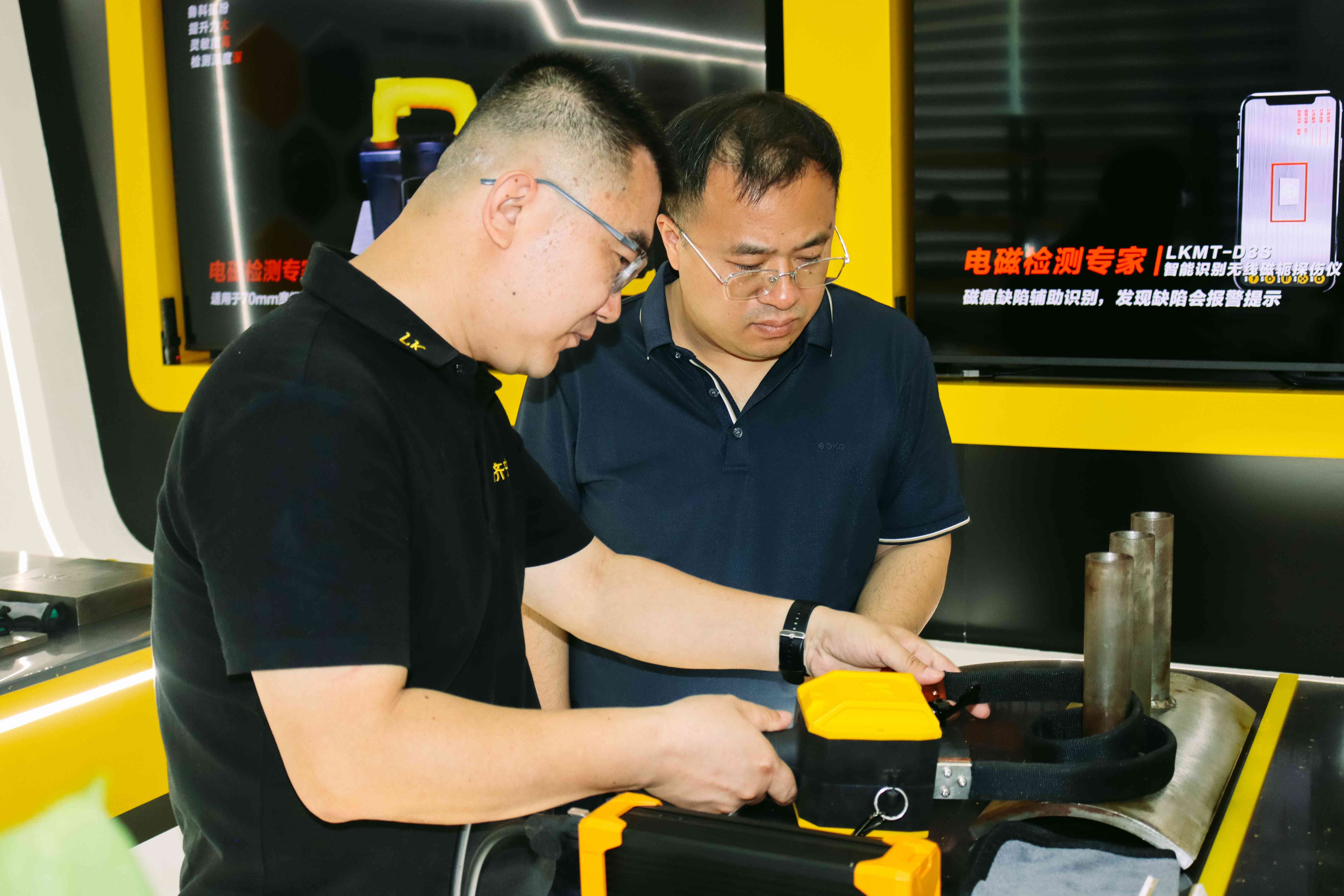 各位專家分別參觀了公司的 磁粉探傷儀(智能識別磁粉探傷儀、場景定制化磁粉探傷儀、一體式磁粉探傷儀、充電式磁粉探傷儀等)交流電磁場檢測儀(ACFM) 自動化檢測儀(磁粉探傷機器人、腐蝕測厚機器人)。
