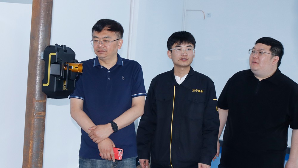 隨后我公司薛建祥總經理陪同陳副院長一行參觀我公司綜合辦公樓、研發生產中心、埋地管道實訓基地、工程公司辦公樓,詳細了解了我公司在便攜磁粉探傷儀、ACFM交流電磁場檢測儀、腐蝕電磁測厚機器人等產品的研發、生產過程,對我公司在產品研發方面的工作表示認可,并規劃了雙方要下一步交流合作的方向,對我司子公司工程公司在埋地鋼制管道及PE管道的取得的檢測成績給予贊賞。