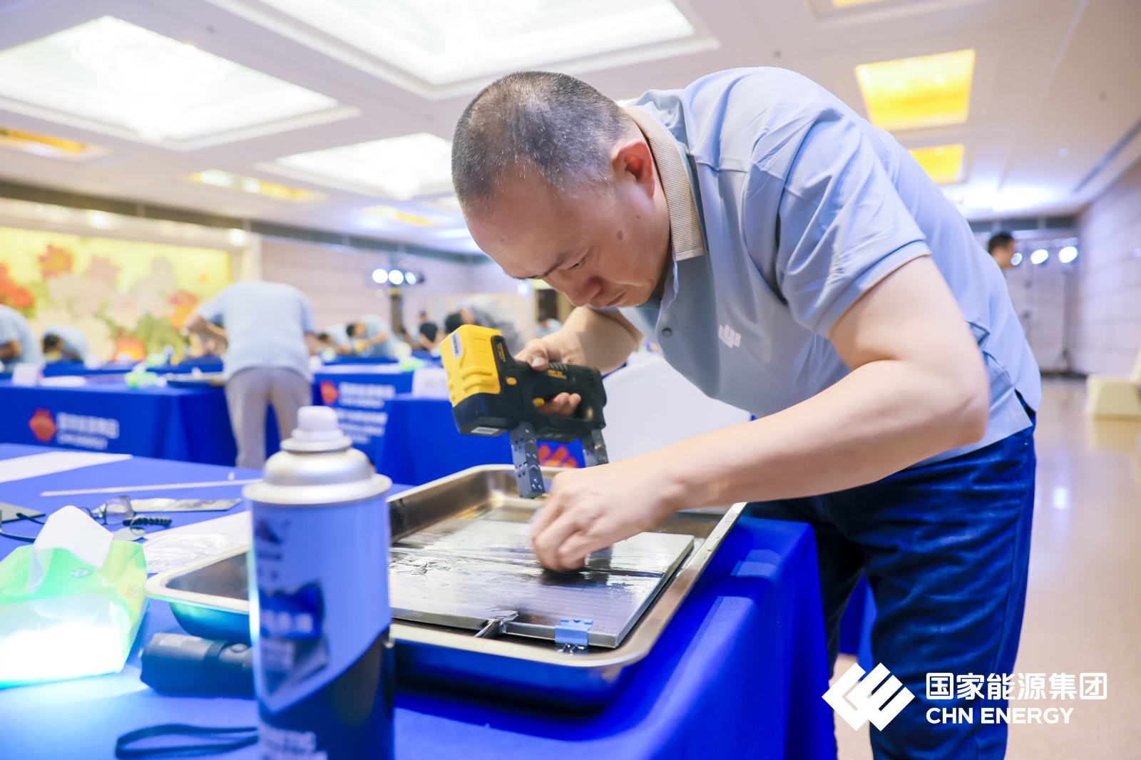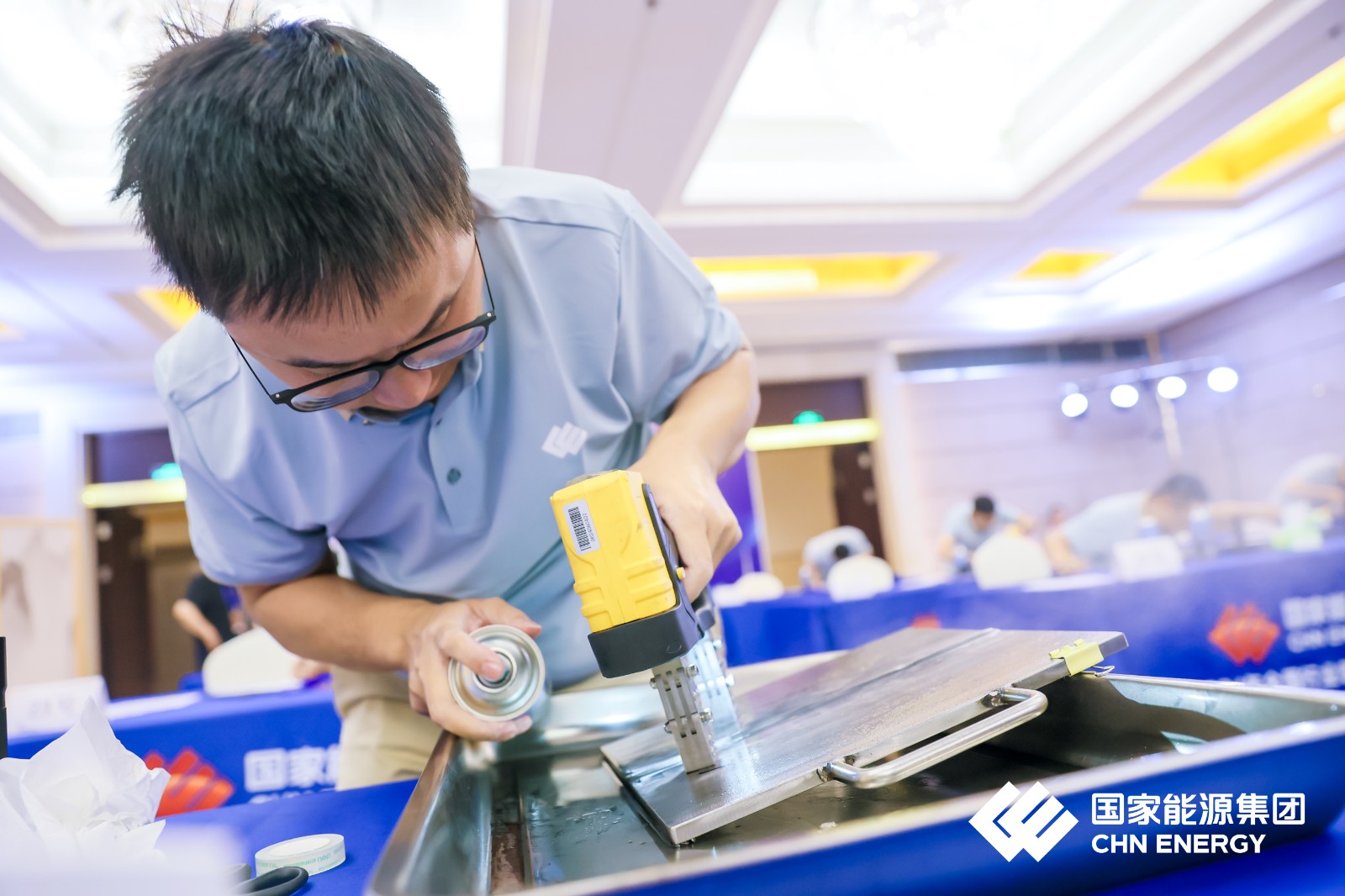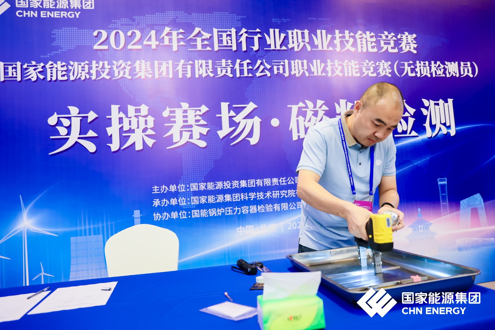 濟(jì)寧魯科助力國(guó)家能源集團(tuán)2024年全國(guó)行業(yè)職業(yè)技能競(jìng)賽,國(guó)家能源投資集團(tuán)有限公司職業(yè)技能競(jìng)賽(無損檢測(cè)員)實(shí)操賽場(chǎng) ?磁粉檢測(cè)。