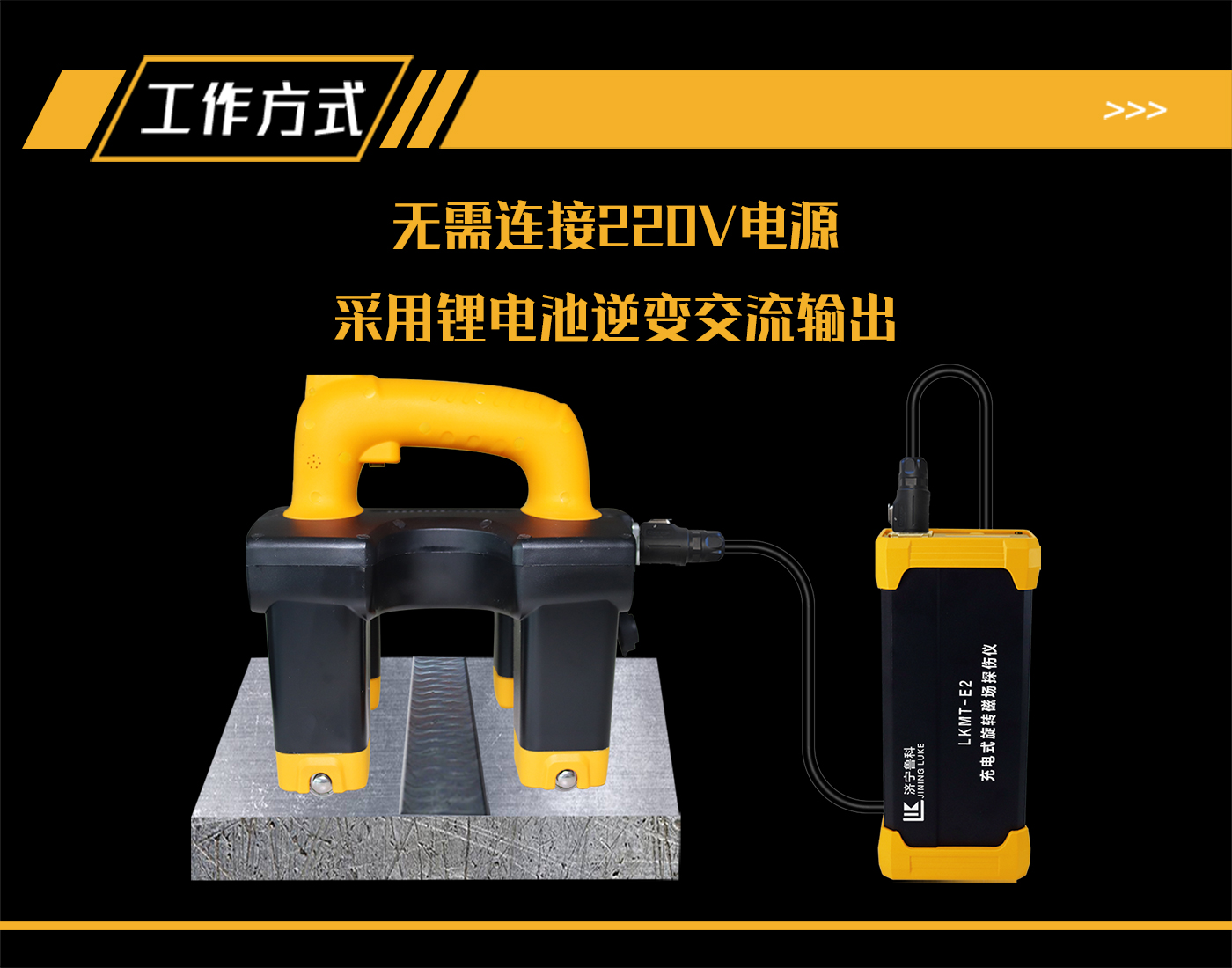 1、LKMT-E2寬焊縫旋轉磁場探傷儀,采用鋰電池電源供電,無需外接110V或220V電源即可產生交流旋轉磁場進行探傷;
