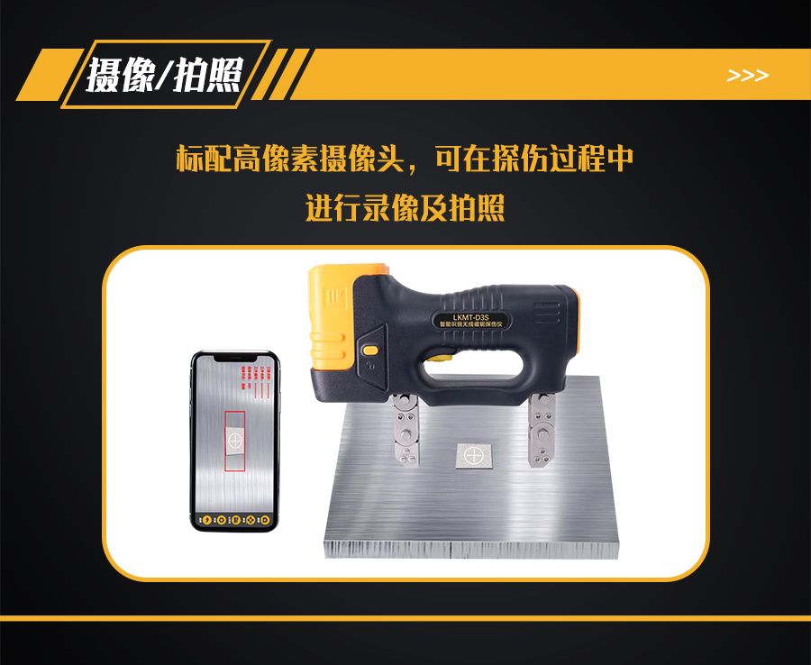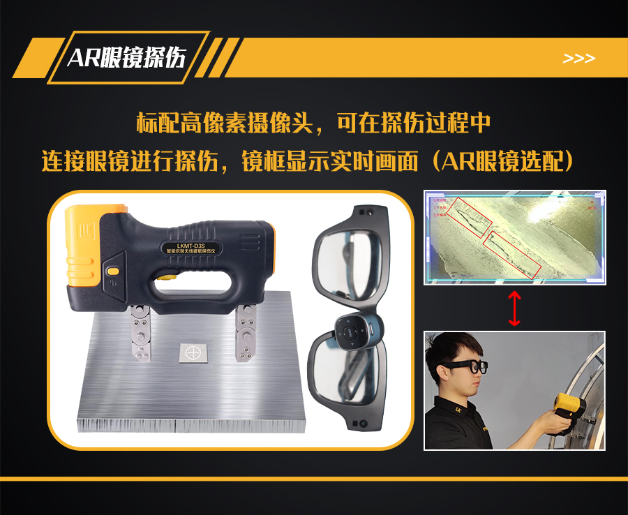 9、探頭內(nèi)部裝有500萬(wàn)像素?cái)z像頭,手機(jī)、平板電腦或AR眼鏡等手持終端安裝APP軟件,通過(guò)Wi-Fi與探頭鏈接,手持終端實(shí)時(shí)顯示探傷狀態(tài)。
