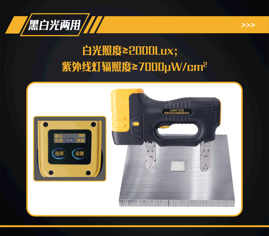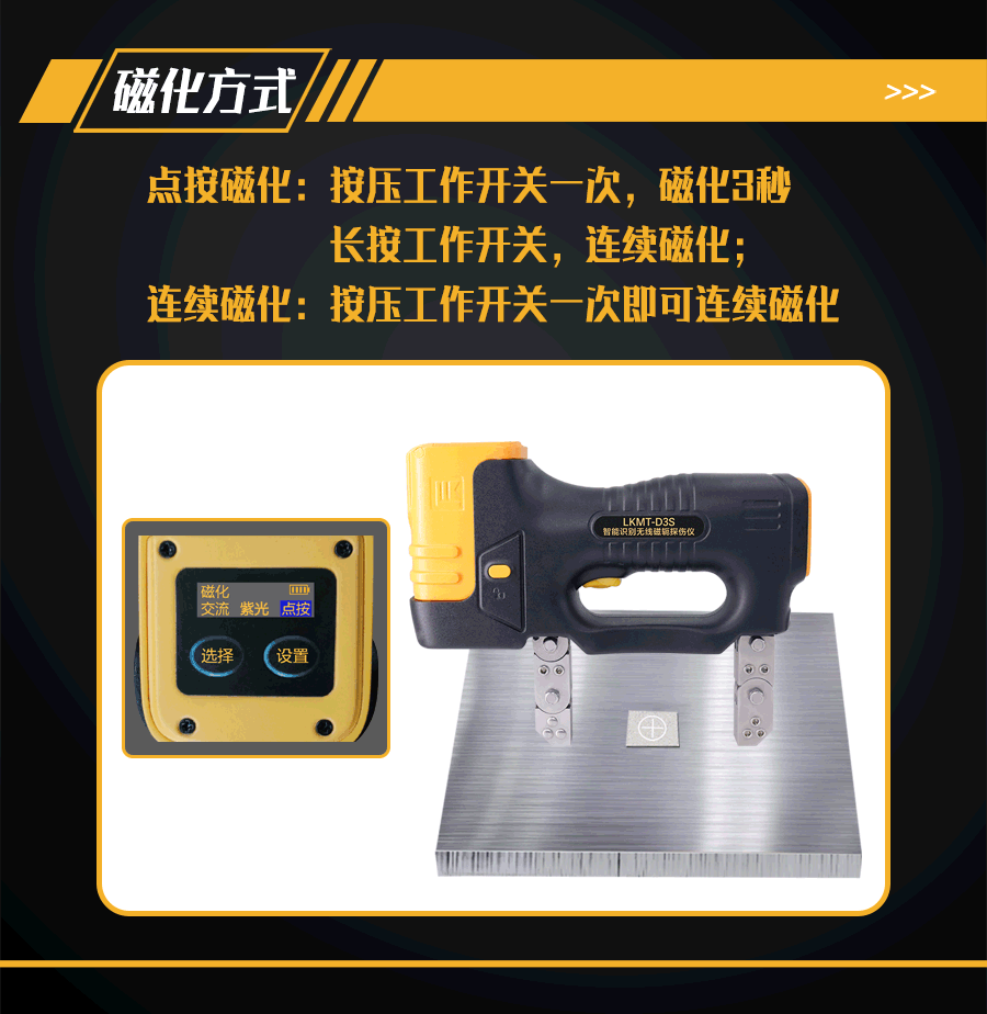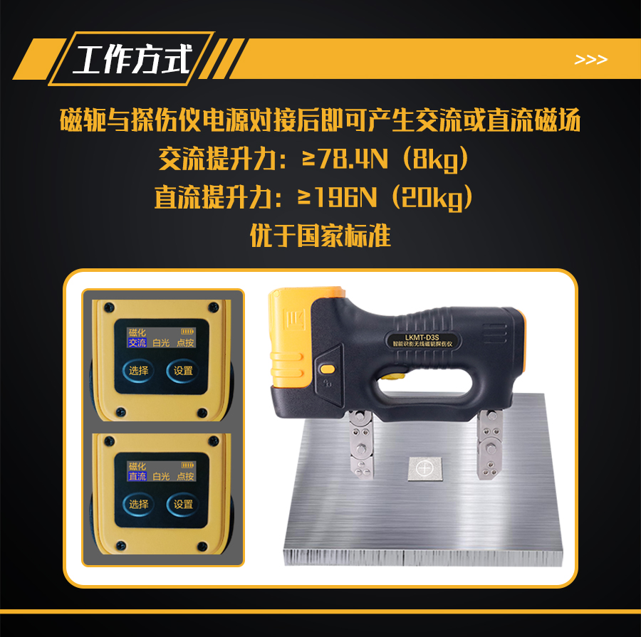 1、LKMT-D3S一體式交直流磁軛探傷儀,探頭與鋰電池一體式設(shè)計(jì),無(wú)需使用線鏈接。